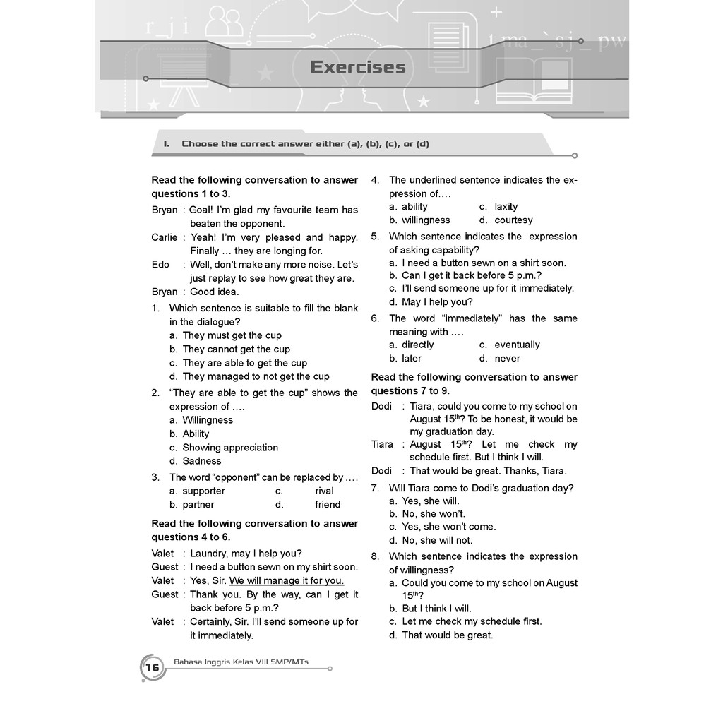 Kunci Jawaban Competency Test 1 Kelas 8 - Kunci Jawaban Lks Smk Mak Semua Mata Pelajaran Penerbit Cv Bina Pustaka Semester Genap Shopee Indonesia : Kunci jawaban competency test kelas 8 ilmusosial id.. Modul pjj bahasa inggris kelas 8 semester genap. Kunci jawaban lks bhs inggris kls 5 semester 1 : Answer the question by choosing a, b, c or d! Tolong kerjakan soal bahasa inggris kelas 8 semester 2 hal 161! Bahasa inggris kelas 8 halaman 41 42 competence test no 1 15 tolong jawab soalnya besok .